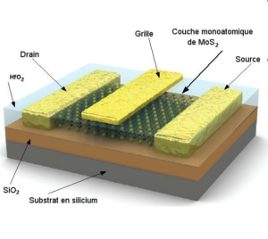 Des chercheurs de l’école Polytechnique Fédérale de Lausanne ont réalisé des transistors en utilisant un nouveau matériau semi-conducteur, de formule MoS2 que l’on peut obtenir sous la forme de couche mono-moléculaire.